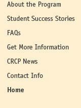 CRCP :: About the ProgramCRCP :: CRCP StudentsCRCP :: FAQsCRCP :: Open House RegistrationCRCP :: CRCP NewsCRCP :: Contact UsCRCP :: Home